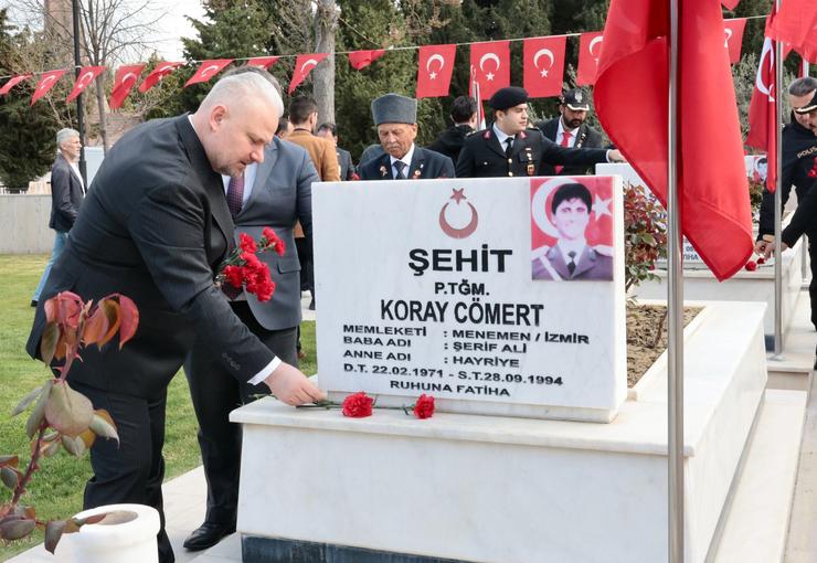 Şehitlikte düzenlenen resmi törende; Türkiye Harp Malulü Gaziler, Şehit, Dul ve Yetimleri Derneği Menemen Temsilcisi Fatih Aslan tarafından günün anlam ve önemini belirten konuşma yaptı. Okunan duaların ardından Şehit kabirlerine karanfil bırakıldı.