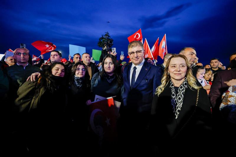 İstanbul Büyükşehir Belediye Başkanı Ekrem İmamoğlu’nun tutuklanmasına tepki olarak Gündoğdu Meydanı’nda düzenlenen Adalet Buluşması’nda konuşan İzmir Büyükşehir Belediye Başkanı Dr. Cemil Tugay, “Ben Gazi Mustafa Kemal Atatürk'ün emanetine ve haklarımıza sonuna kadar sahip çıkmaya devam edeceğim” dedi.