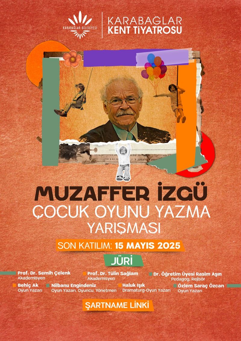 Karabağlar Belediyesi Kent Tiyatrosu, yaşamının son yıllarını Karabağlar’da geçiren Türk edebiyatının usta kalemi Muzaffer İzgü’nün anısını yaşatmak amacıyla anlamlı bir projeye imza atıyor. Türk tiyatrosuna yeni yazarlar kazandırmayı hedefleyen ve İzgü’ye bir saygı duruşu niteliği taşıyan “Çocuk Oyunu Yazma Yarışması” tüm ülkeden başvurulara açık olarak düzenleniyor.