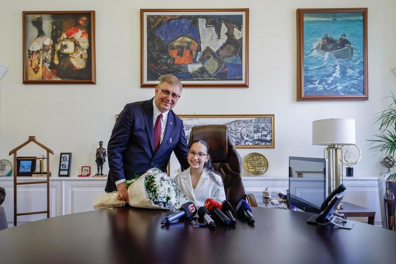 İzmir Büyükşehir Belediye Başkanı Dr. Cemil Tugay, Ulu Önder Gazi Mustafa Kemal Atatürk'ün dünya çocuklarına armağan ettiği 23 Nisan Ulusal Egemenlik ve Çocuk Bayramı'nda koltuğunu İzmir Çocuk Meclisi sözcüsü, Atakent Erdoğan Kibarer Ortaokulu 6. sınıf öğrencisi 12 yaşındaki Derin Taş'a devretti. Makamında eşi Öznur Tugay ile Derin Taş ve ailesini ağırlayan Başkan Tugay, “Bugün sana koltuğumuzu teslim edeceğim. Yüreğindeki dilekler gerçekleşsin. Senin gibi güzel çocuklarımız böyle güzel görevlerde olacaklar. Senin burada olman onlara da ilham versin” dedi.