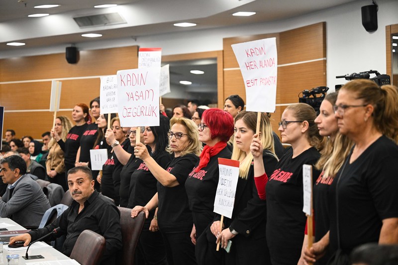 Toplantıda, İzmir Büyükşehir Belediye Meclisi'nde AK Partili Meclis Üyesi Erdal Seyitler’in, CHP Grup Sözcüsü Yağmur Özkan'a yönelik küfürlü söylemine karşı gösterilen tepkiler de gündeme taşındı. CHP Bornova Kadın Kolları ve Bornovalı kadınlar, üzerlerinde “Güç sende” yazılı tişörtlerle mecliste sessiz bir eylem gerçekleştirdi.