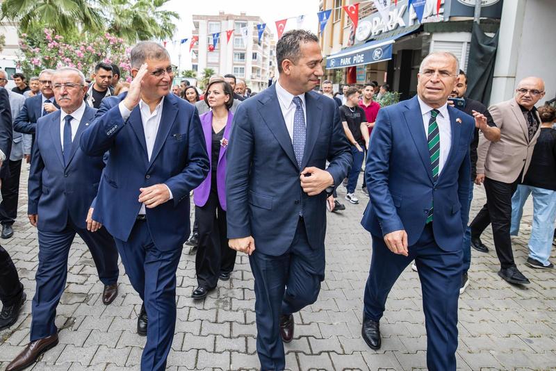 İzmir Büyükşehir Belediye Başkanı Dr. Cemil TUGAY, aralarında önceki dönem Büyükşehir Belediye Başkanı Aziz Kocaoğlu, önceki dönem Narlıdere Belediye Başkanı Ali Engin, eski milletvekille...