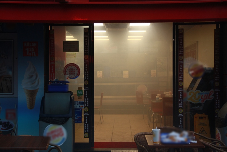 Dünyaca ünlü fast-food restoranın mutfak bölümünde bulunan bacasının ısınmasıyla çevresindeki evsel atıklar alev aldı. Restoranda yemek yiyenler yangını far edince kendilerini dışarı attı. 5’inci kata kadar uzanan mutfak bacasındaki alevler tüm apartmanı sardı. Bacanın binanın dış bölümünde bulunmasında dolayı yangını fark edemeyen apartman sakinleri evin içinde mahsur kaldı. Fast-food şirketi çalışanlarından iki kişi yangına müdahale etmek isterken içerideki dumana maruz kalarak zehirlenme tehlikesi geçirdi. Bu iki kişi ambulansla Seyfi Demirsoy Hastanesi’ne götürüldü.