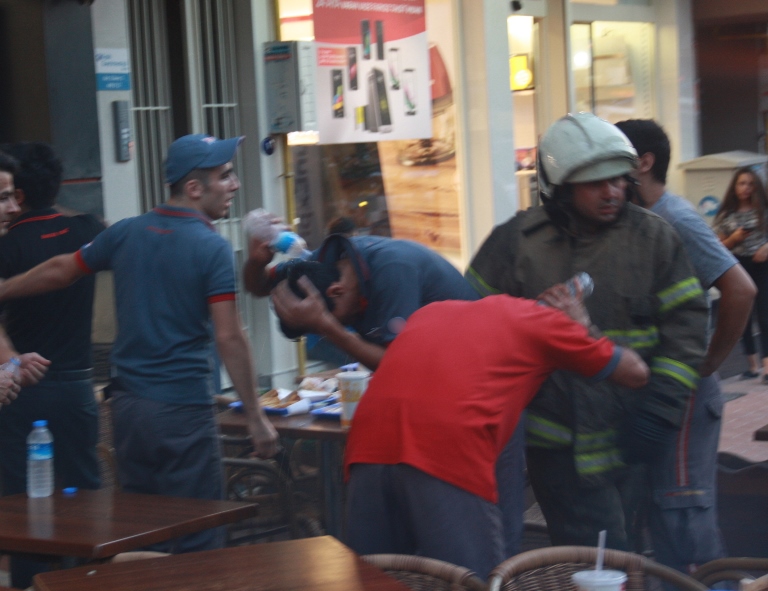 İtfaiyenin gelmesi ile apartmanda mahsur kalan vatandaşlar dışarı çıkarıldı. İtfaiye aracı Forbes Caddesi’ne yapılan bariyerlerden dolayı içeri giremezken itfaiye ekibi hortumlarını birleştirerek en üst kata kadar suyu götürmeyi başardı. Bu esnada apartman sakinleri ve çevredeki vatandaşlar Forbest Caddesi’ne araç girmesini engelleyen bariyerlerin yapılmasına isyan etti. Bir vatandaş, bariyerlerin yangın yerine yakın olduğunu, bu bölgeye uzak bir yerde yangın çıkması ya da acil bir durum olması halinde müdahale edilemeyeceğini söyleyerek bariyerleri buraya yapanlara tepki gösterdi. Yapılan bu bariyerlerin buradan kalkması için yetkililere seslenen vatandaş, “Acil durumlarda buraya ambulans, itfaiye giremiyor. Kimsenin canı yanmadan, kimsenin başına büyük bir felaket gelmeden buna bir çözüm bulun” dedi.