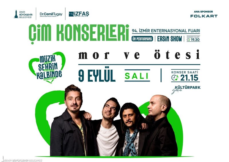 Bu yıl 94’üncüsü düzenlenen İzmir Enternasyonal Fuarı, kapanışını İzmir’in kurtuluş gününde yapacak. Saat 20.00’de Kültürpark Ana Sahne’de DJ Ersin Show sahne alacak. Saatler 21.15’i gösterdiğinde ise Çim Konserleri kapsamında Mor ve Ötesi muhteşem bir konsere imza atacak.
