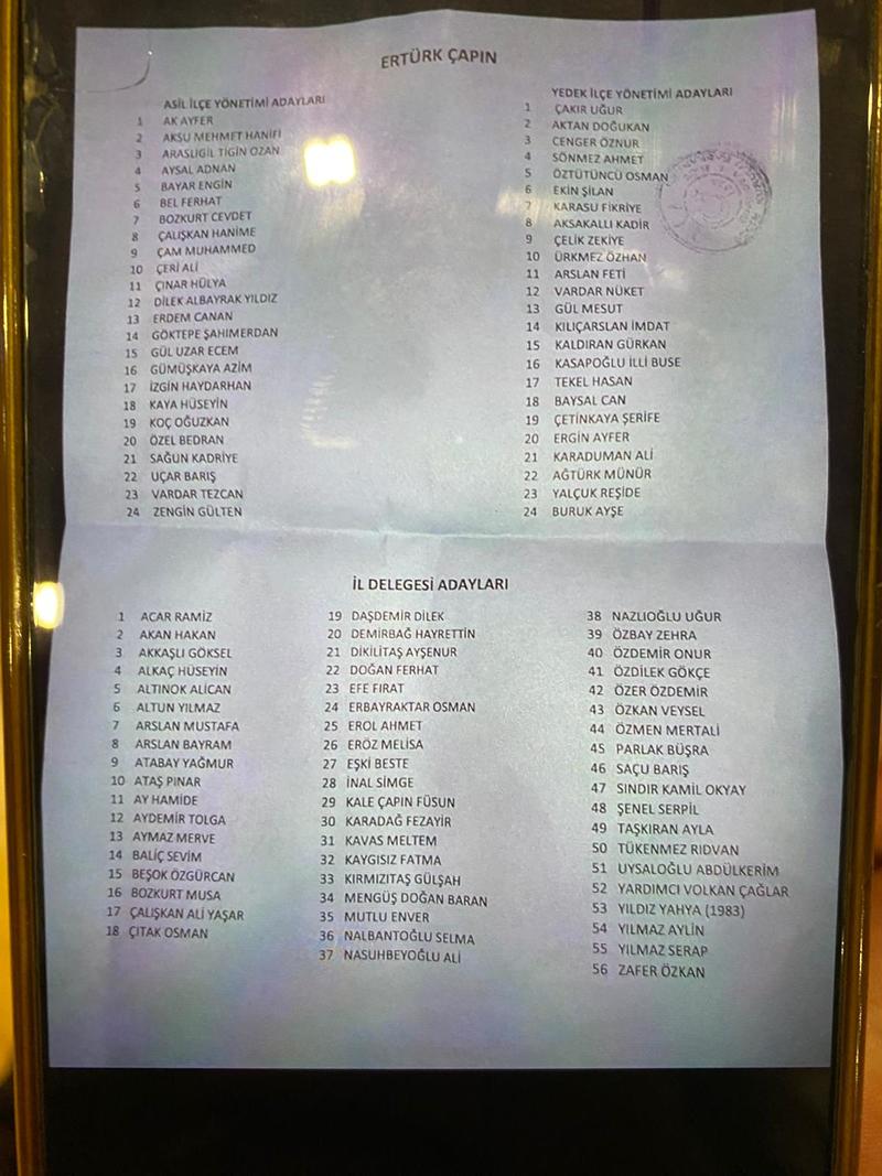 ERTÜRK ÇAPIN'IN LİSTESİ BELLİ OLDU:
