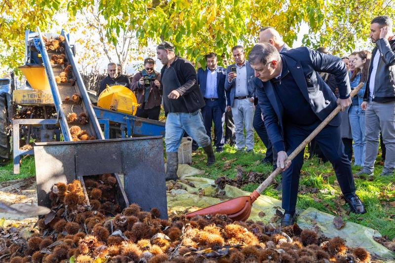 İzmir Büyükşehir Belediye Başkanı Dr. Cemil Tugay, Beydağ ilçesinde kestane üreticileriyle bir araya geldi. Bölgenin en önemli ihracat kalemleri arasında yer alan kestanede üretim kapasitesini artırmanın önemine değinen Başkan Tugay, “Kestane gözümüz gibi korumamız gereken bir tarımsal ürün. Beydağ’da hastalığa dirençli ağaçlar dağıtarak ve hastalıkla mücadele ederek üretimi desteklemeye devam edeceğiz” dedi.