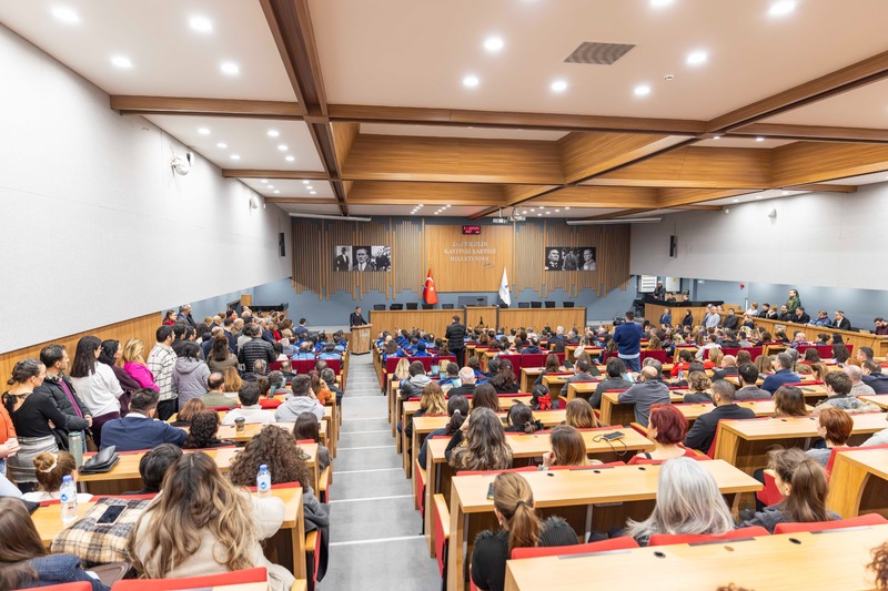 İzmir Büyükşehir Belediyesi’nin personelinin yeni yılını kutlamak için düzenlenen etkinlikte konuşan İzmir Büyükşehir Belediye Başkanı Dr. Cemil Tugay, kentteki tüm yurttaşlara ayrım gözetmeksizin sunulan hizmetler için çalışma arkadaşlarına teşekkür etti. Tugay, “İşimiz bizim namusumuzdur. Daha fazla çalışan, daha az hata yapan bir belediye başkanı olmak için elimden geleni yapacağım. Biz bu yola baş koyduk ama tüm çalışma arkadaşlarımıza ihtiyacımız var. Bu dev kurumun her bir bireyine ihtiyacımız var” dedi.