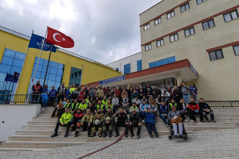 İzmir Büyükşehir Belediyesi, engelli bireylerin afet anlarında güvenli tahliyesi için Karabağlar’daki Yurdoğlu Engelli Hizmet Merkezi’nde kapsamlı bir tatbikat gerçekleştirdi. Deprem ve yangın senaryosuyla yapılan uygulamada erişim, yönlendirme ve güvenlik riskleri sahada test edildi.