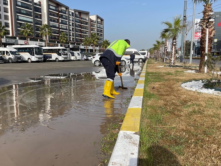 Fırtına nedeniyle devrilen ağaçlar ve kırılan dallar belediye ekipleri tarafından hızla kaldırılarak park ve yeşil alanlar güvenli hale getirildi. Sağanak yağışın etkisiyle mazgal ve ızgaralarda biriken atıklar temizlenirken, yollarda oluşan su birikintileri vidanjörler aracılığıyla tahliye edilerek ulaşımda aksama yaşanmasının önüne geçildi.