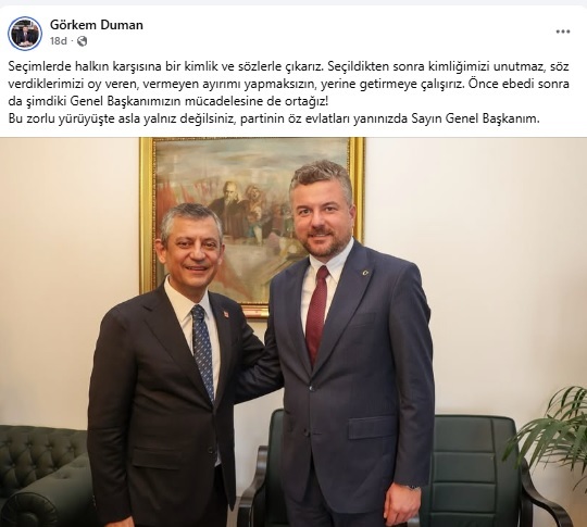 Görkem Duman'dan Özgür Özel'e destek: Partinin öz evlatları yanınızda