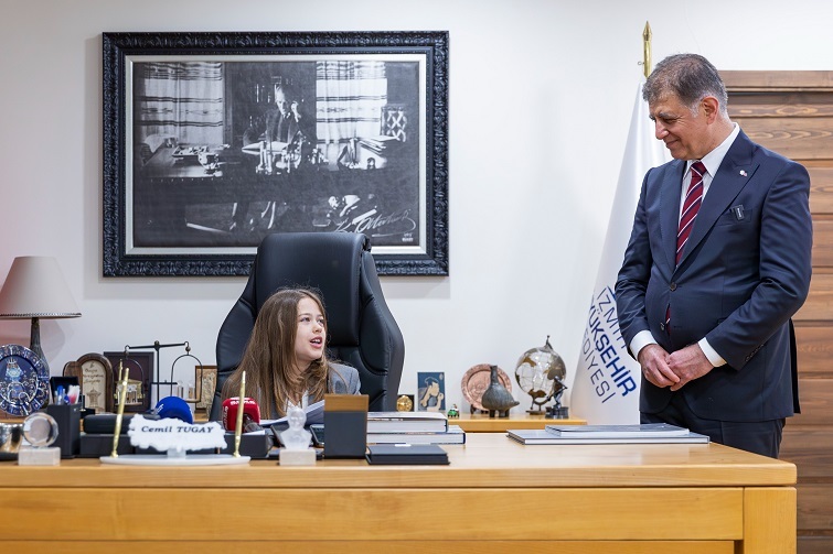 İzmir Büyükşehir Belediye Başkanı Dr. Cemil Tugay, Ulu Önder Gazi Mustafa Kemal Atatürk'ün dünya çocuklarına armağan ettiği 23 Nisan Ulusal Egemenlik ve Çocuk Bayramı'nda koltuğunu İzmir Çocuk Meclisi Sosyal Etkinlikler Planlama Komisyonu üyesi Selçuk Yaşar Alaybey Ortaokulu 5. sınıf öğrencisi Meryem Günay ve Buca 30 Ağustos İlkokulu 4. Sınıf öğrencisi Aras İpek’e devretti. Makamında eşi Öznur Tugay ile birlikte Meryem Günay ve Aras İpek'i aileleriyle birlikte ağırlayan Başkan Tugay'a, “Bayramınızı kutluyorum. Bugün koltuğu size devredeceğim. İleride zaten sizler bu koltuklara, makamlara geleceksiniz. Her şey gönlünüzden geçtiği gibi olsun” dedi.