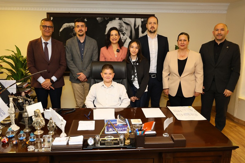 Efes Selçuk Belediye Başkanı Filiz Ceritoğlu Sengel, bu yıl makam koltuğunu 19 Mayıs Ortaokulu 5. sınıf öğrencisi Eren Namdar’a devretti. Belediye başkan yardımcıları ve meclis üyeleriyle bir araya gelen Namdar, “Çocuklar için daha güvenli alanlar, okullar ve oyun alanları yaparsak daha iyi olur” dedi.