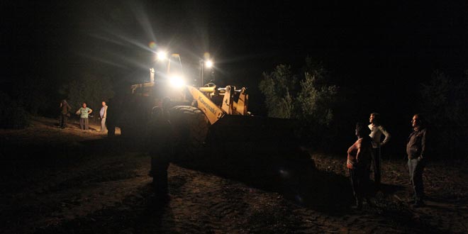 Gece yarısı köylüleri şaşkına çeviren bir gelişme yaşandı. Şirketin iki iş makinesinin köye gelerek zeytinlik alanda kesim işlerine başlaması üzerine Çevre örgütü Greenpeace'in avukatları köye geldi. Davaya itiraz için 7 günlük sürenin dolmadığını bu nedenle kesimin yapılamayacağı ifade etti fakat iş makinelerinin çalışmaya devam edince gerginlik çıktı. Ağaç kesiminin yapıldığı zeytinlik alanda bahçeleri bulunan 20 ‘ye yakın köylü, iş makinelerinin önüne geçti. Durumu haber alan CHP Manisa Milletvekili Özgür Özel de ilçeye gelerek köylülerle birlikte iş makinelerinin önüne geçip, çalışmasına izin vermedi. İki iş makinesi ve işçiler, köyün dışına çıkartılırken, jandarma olayların daha fazla büyümemesi için önlem aldı. Köylüler, dozerleri durdurmadan önce, makinelerin 20 ağacı kestikleri belirlendi. Ağaçların kesildiği zeytinliğin önünde nöbete başlayan köylüler, dayanışma ve direniş çağrısında bulundu.
