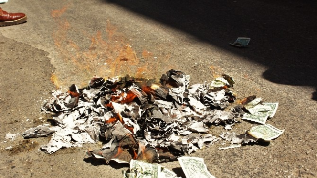 Müzisyenler Sokak Ortasında 5 Bin Doları Yaktı