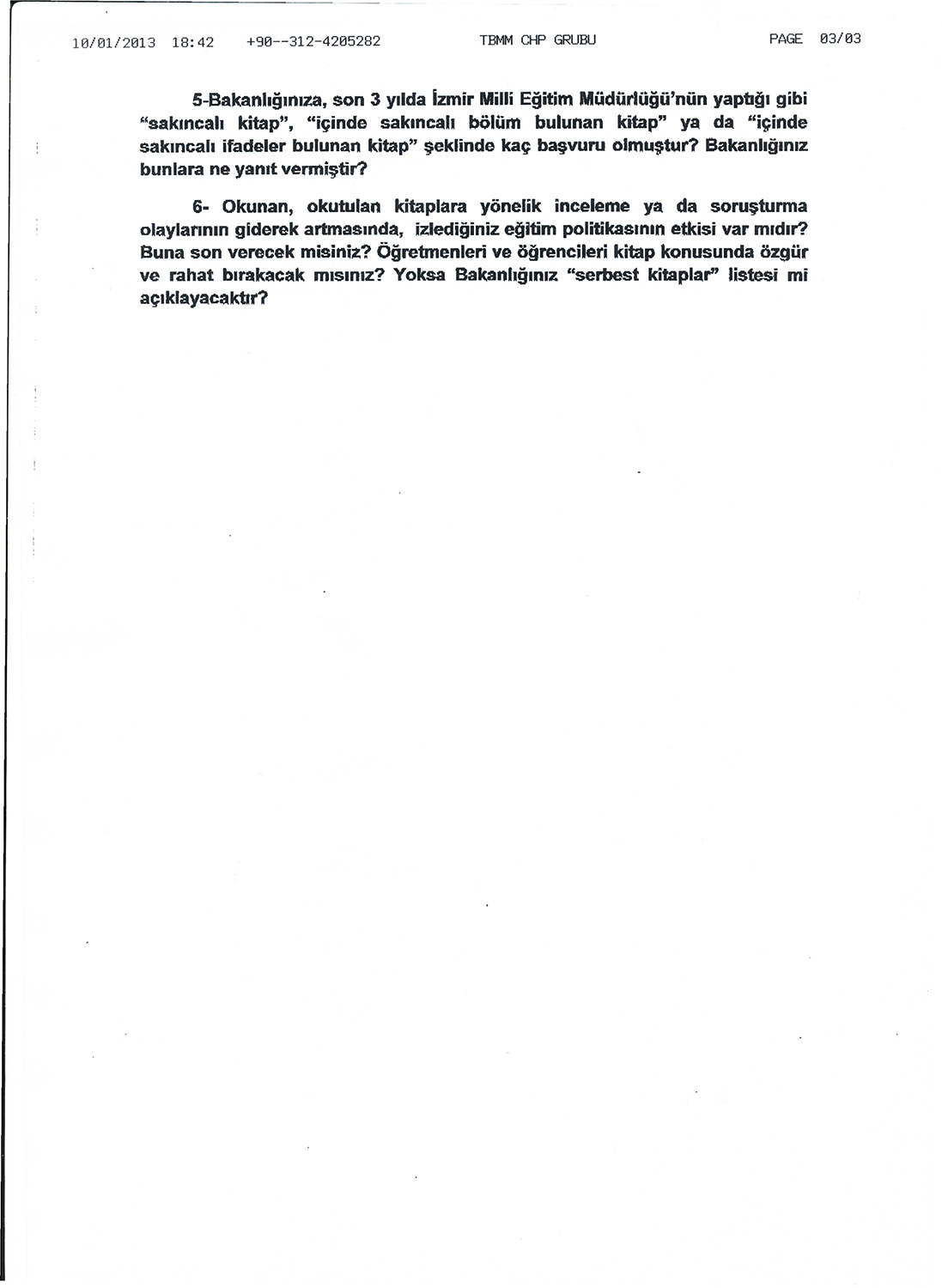 6- Okunan, okutulan kitaplara yönelik inceleme ya da soruşturma olaylarının giderek artmasında, izlediğiniz eğitim politikasının etkisi var mıdır? Buna son verecek misiniz? Öğretmenleri ve öğrencileri kitap konusunda özgür ve rahat bırakacak mısınız? Yoksa Bakanlığınız “serbest kitaplar” listesi mi açıklayacaktır?