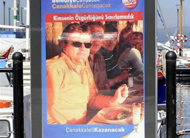 AKP, Çanakkale milletvekili Mehmet Daniş'in aday olduğu Çanakkale’deki billboardlara içki fotoğraflı seçim afişleri astı. AKP logosu bulunan afişlerde meyhanede içki içen üç kişinin fotoğrafı yer alıyor. ''Yeni Rakı'' yazan bardaklar da görülüyor ve ''Kimsenin özgürlüğünü sınırlamadık. Çanakkale kazanacak’ yazıyor. Bir başka afişte de içkili bir mekanda oynayanların fotoğrafına yer veriliyor. ''Gökçeada’da 14 olan içkili yerler ruhsatını AK Belediye 44’e çıkardı’ ifadesi yer alıyor.