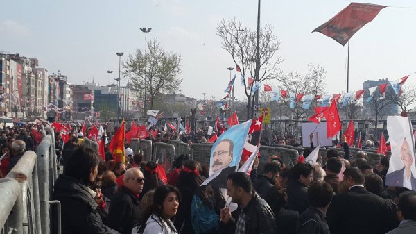 CHP mitingi nedeniyle Kadıköy Rıhtım Meydanı'nda adım atacak yer kalmadı. Yapılan anonslarda vatandaşların yoğun kalabalık dolayısıyla Haydarpaşa Garı'na doğru yürümeleri istendi. Bu arada CHP reklamlarında oynayan ve 'oyum Sarıgül'e' diyen teyze de miting alanındaki yerini aldı.