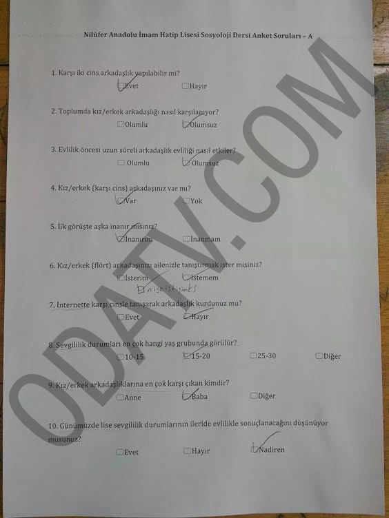 Erdoğan’ın başlattığı “kızlı-erkekli” tartışmasının ardından, Bursa Nilüfer İmam Hatip Lisesi’nde yapılan bir anket görenleri şaşırttı.
