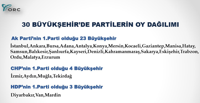 30 Büyükşehir içindeyse CHP sadece İzmir, Aydın, Muğla ve Tekirdağ'da birinci.