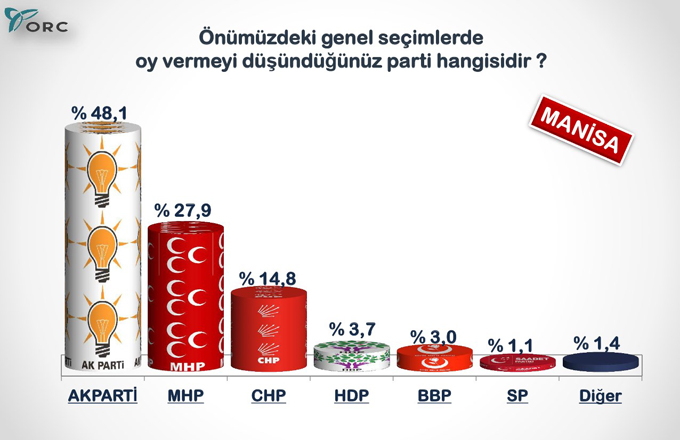 Geçtiğimiz mayıs ayında maden katliamının yaşandığı Soma'da ise AKP yüzde 48.1 oy oranı ile birinci.