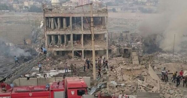 Kulakları sağır eden ve deprem etkisi yaratan patlamayla birlikte Çevik Kuvvet Şube Müdürlüğü binasının ön cephesi tamamen çökerken, yan tarafta polislerin kaldığı bölümler yıkıldı, malzeme deposu alev aldı. Olay yerine takviye polis ekipleri TOMA'lar ve itfaiye araçları sevk edildi. Yangına itfaiye ile birlikte TOMA'lar da su sıkarak müdahale etti.