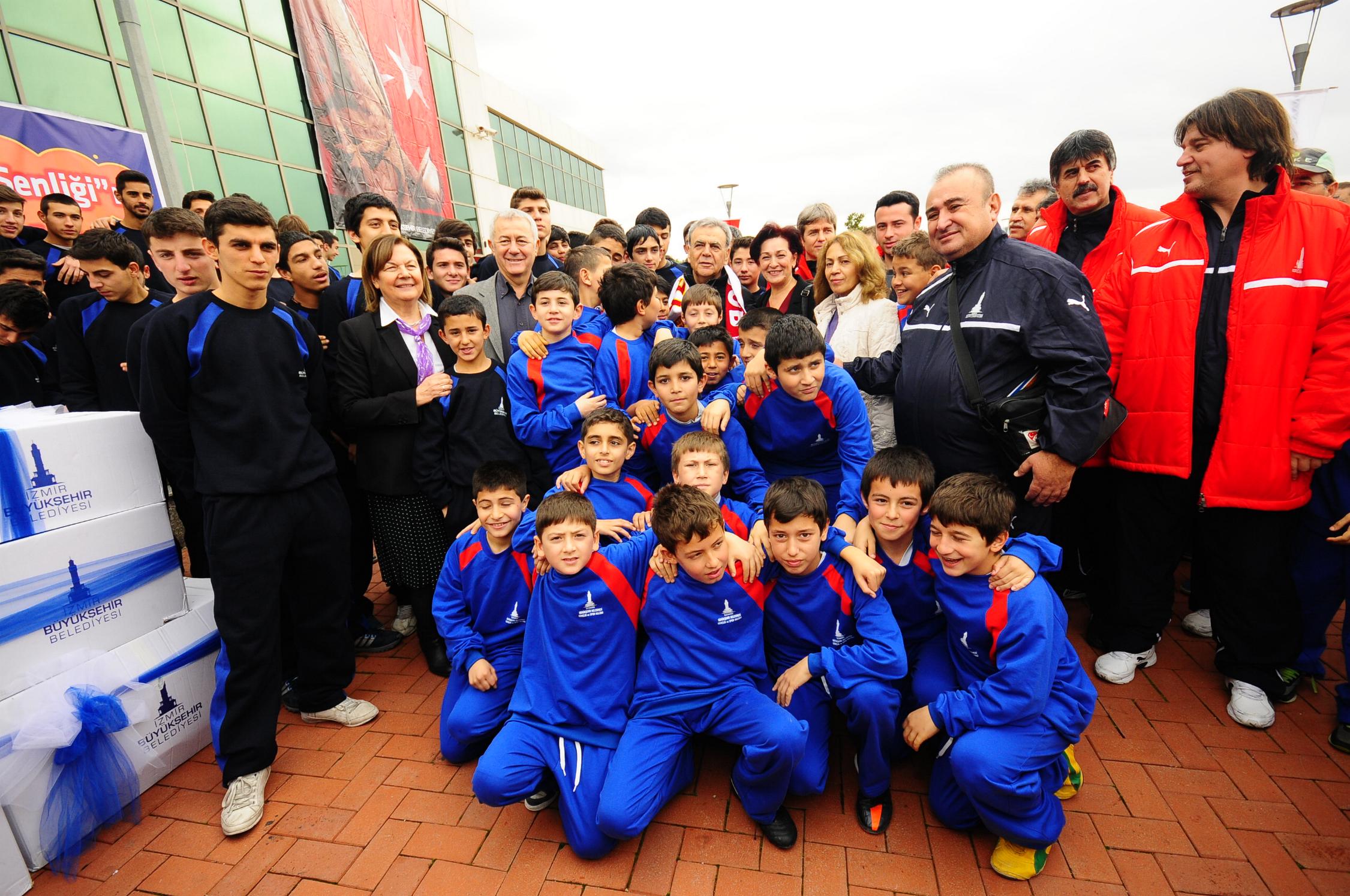 İzmir Büyükşehir Belediyesi, maddi imkansızlıklarla boğuşan amatör spor kulüplerine verdiği desteği bu yıl da sürdürdü. Büyükşehir Belediye Başkanı Aziz Kocaoğlu, Bornova Aşık Veysel Rekreasyon Alanı’ndaki Buz Sporları Salonu bahçesinde düzenlenen ‘Geleneksel Amatör Spor Şenliği’ kapsamında, 219 spor kulübüne malzeme yardımı törenine katıldı. Törende İzmir Milletvekilleri Alaattin Yüksel, Mustafa Moroğlu, Prof. Dr. Hülya Güven, Prof. Dr. Oğuz Oyan, CHP İl Başkanı Ali Engin, Aliağa Belediye Başkanı Ömer Turgut Oğuz, Balçova Belediye Başkanı Mehmet Ali Çalkaya, Bayraklı Belediye Başkanı Hasan Karabağ, Bergama Belediye Başkanı Mehmet Gönenç, Buca Belediye Başkanı Ercan Tatı, Bornova Belediye Başkanı Prof. Kamil Okyay Sındır, Çiğli Belediye Başkanı Metin Solak, Dikili Belediye Başkan Vekili Yusuf Altıparmak, Foça Belediye Başkanı Gökhan Demirağ, Güzelbahçe Belediye Başkanı Mustafa İnce, Karabağlar Belediye Başkanı Sıtkı Kürüm, Karaburun Belediye Başkanı Serdar Yasa, Karşıyaka Belediye Başkanı Cevat Durak, Kemalpaşa Belediye Başkanı Rıdvan Karakayalı, Narlıdere Belediye Başkanı Abdül Batur, Ödemiş Belediye Başkanı Bekir Keskin, Selçuk Belediye Başkanı Vefa Ülgür, Torbalı Belediye Başkanı İsmail Uygur, Urla Belediye Başkanı Selçuk Karaosmanoğlu’nun yanısıra spor kulübü başkan ve yöneticileri ile sporcuları da hazır bulundu.